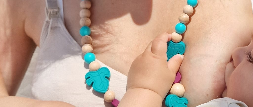 Los collares de lactancia y porteo son accesorios diseñados especialmente para que las mamás los usen mientras amamantan o portan a su bebé. Están hechos de materiales seguros y no tóxicos, como silicona de grado alimenticio o madera de haya natural, y cumplen una doble función: