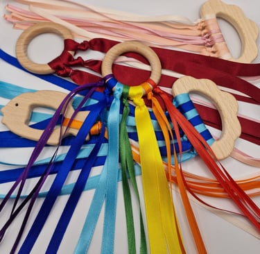Estimulación sensorial del bebé. Tienda especializada en porteo. Todo hecho a mano y con mucho cariño.